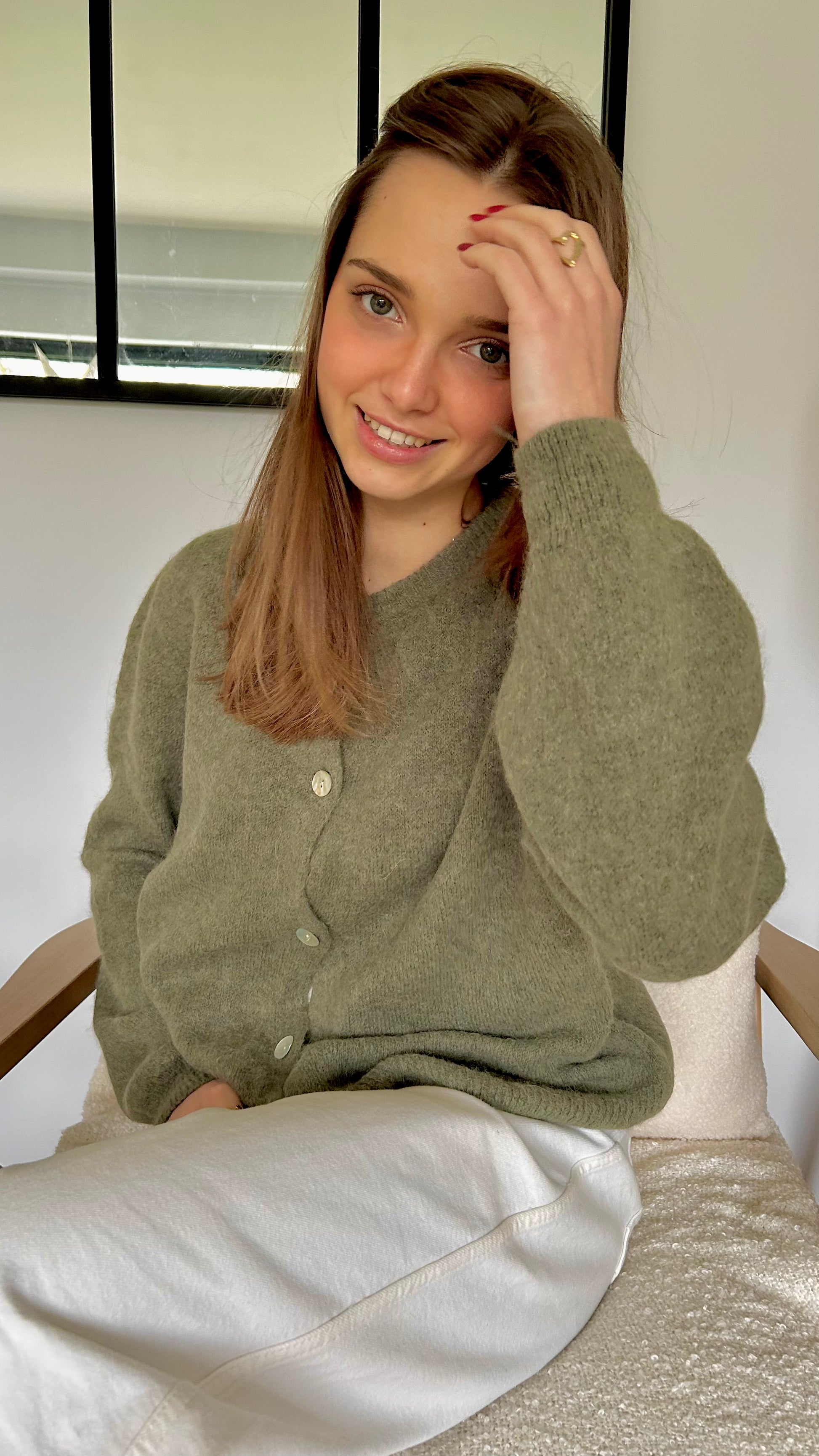Corresponds à une taille 36/40. Le mannequin porte une taille unique et mesure 1,68m.